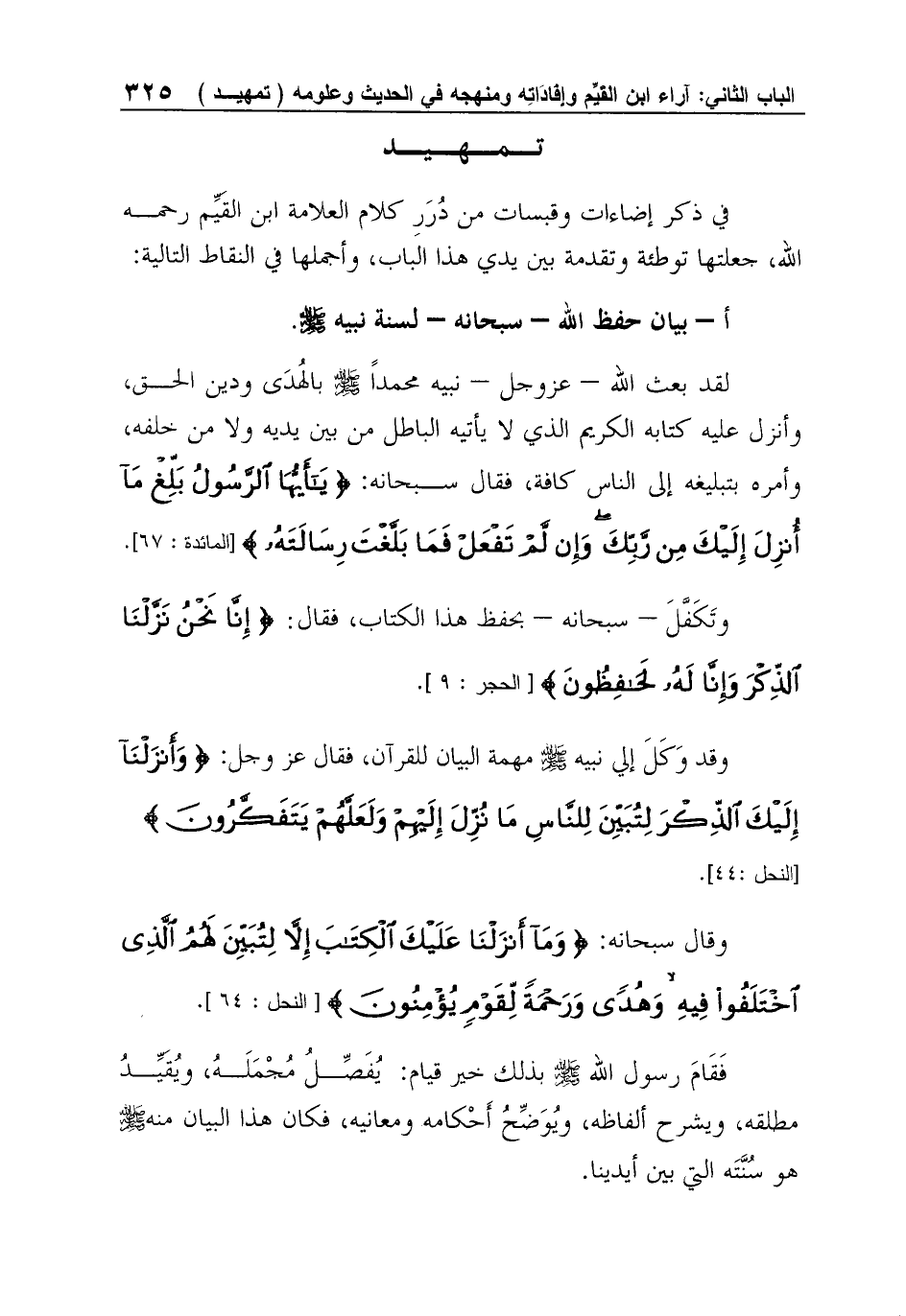 الباب الثاني: آراء ابن القيم ومنهجه في الحديث وعلومه