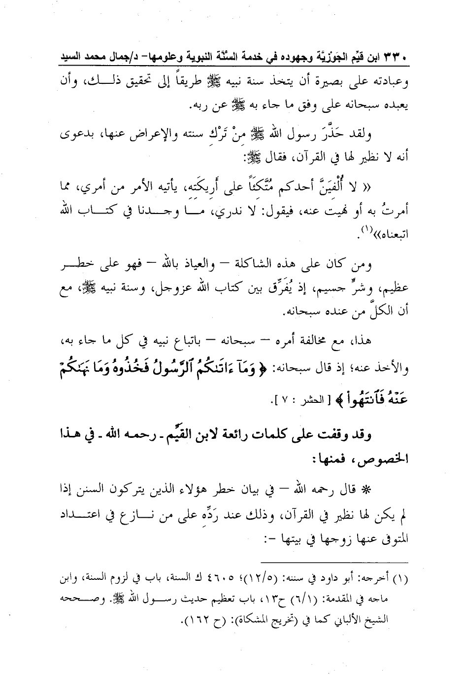 كتاب ابن قيم الجوزية وجهوده في خدمة السنة النبوية وعلومها (اسم الجزء: 1)