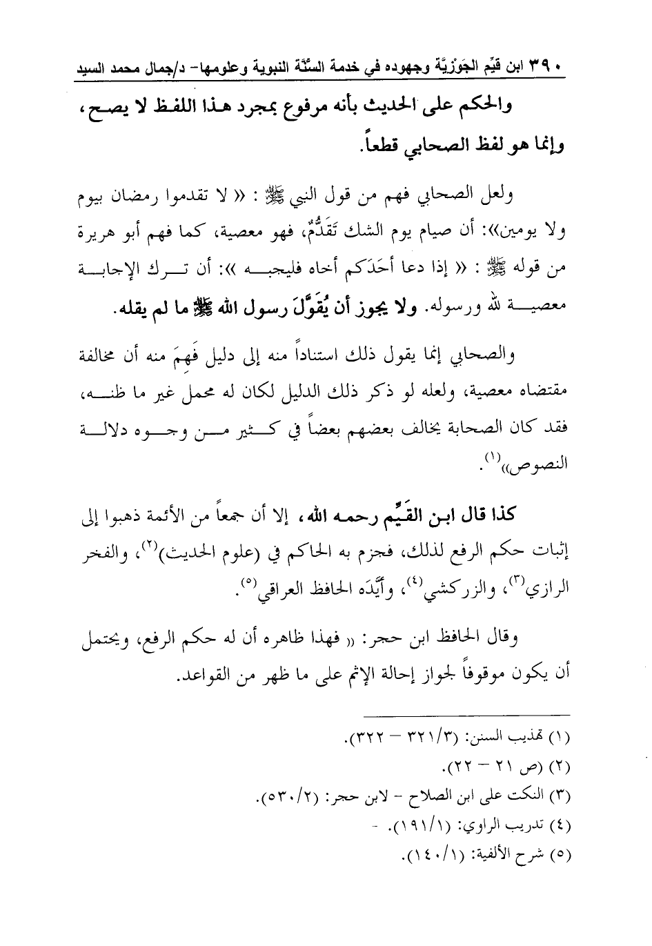 كذا قال ابن القَيِّم رحمه الله، إلا أن جمعاً من الأئمة ذهبوا إلى إثبات حكم الرفع لذلك، فجزم به الحاكم في (علوم الحديث) 2، والفخر الرازي3، والزركشي4، وأيَّدَه الحافظ العراقي5.