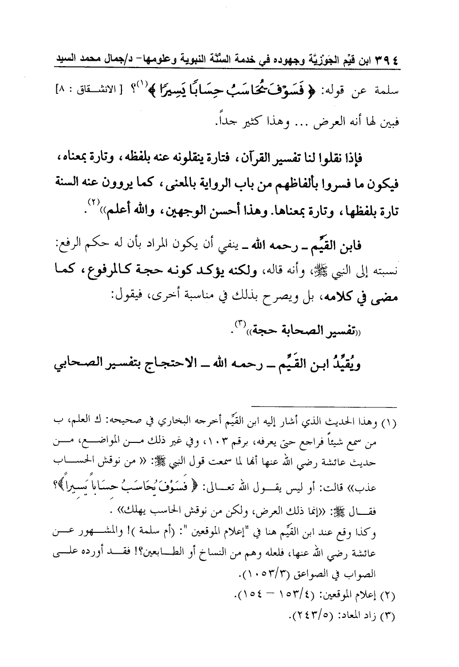 سلمة عن قوله: {فَسَوْفَ يُحَاسَبُ حِسَاباً يَسِيراً} 1؟ [الانشقاق: 8] فبين لها أنه العرض ... وهذا كثير جداً.
