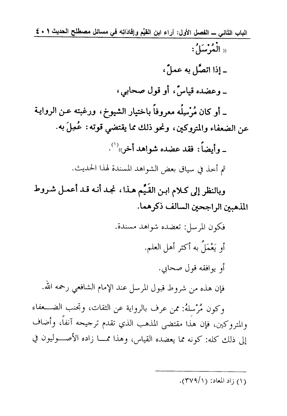 وبالنظر إلى كلام ابن القَيِّم هذا، نجد أنه قد أعمل شروط المذهبين الراجحين السالف ذكرهما.