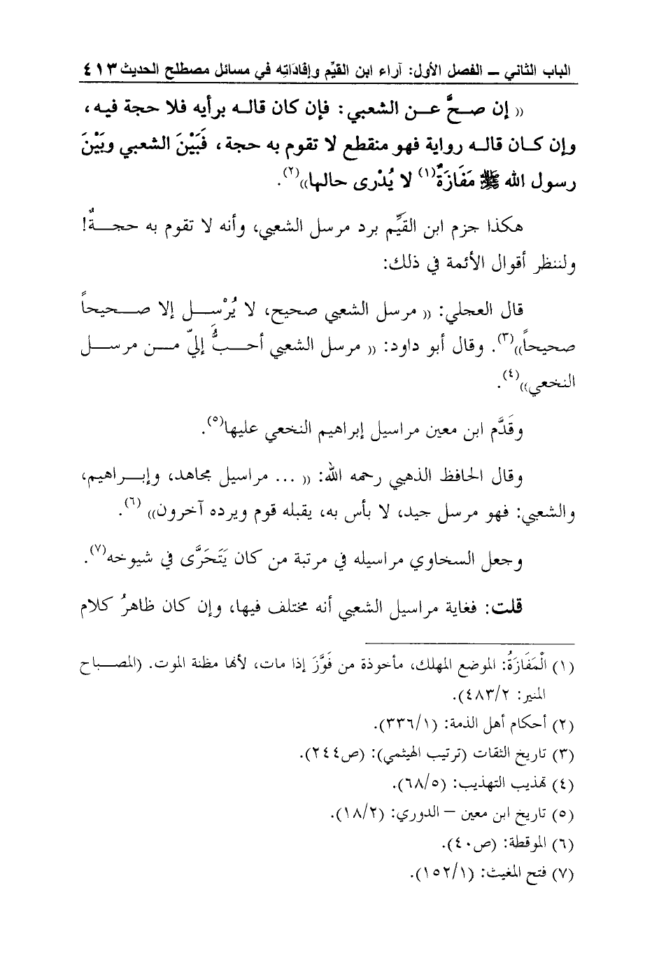هكذا جزم ابن القَيِّم برد مرسل الشعبي، وأنه لا تقوم به حجةٌ! ولننظر أقوال الأئمة في ذلك: