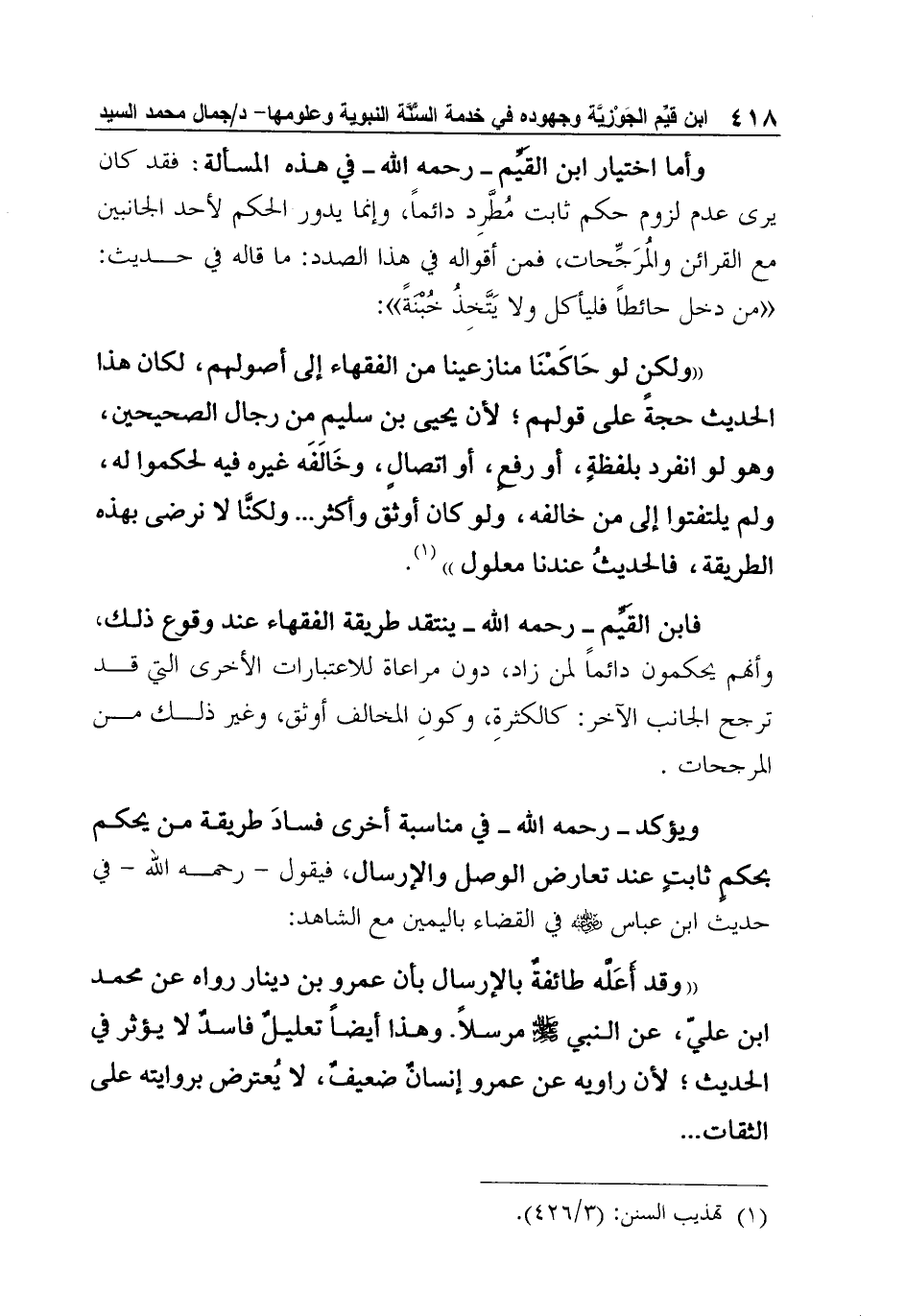 كتاب ابن قيم الجوزية وجهوده في خدمة السنة النبوية وعلومها (اسم الجزء: 1)