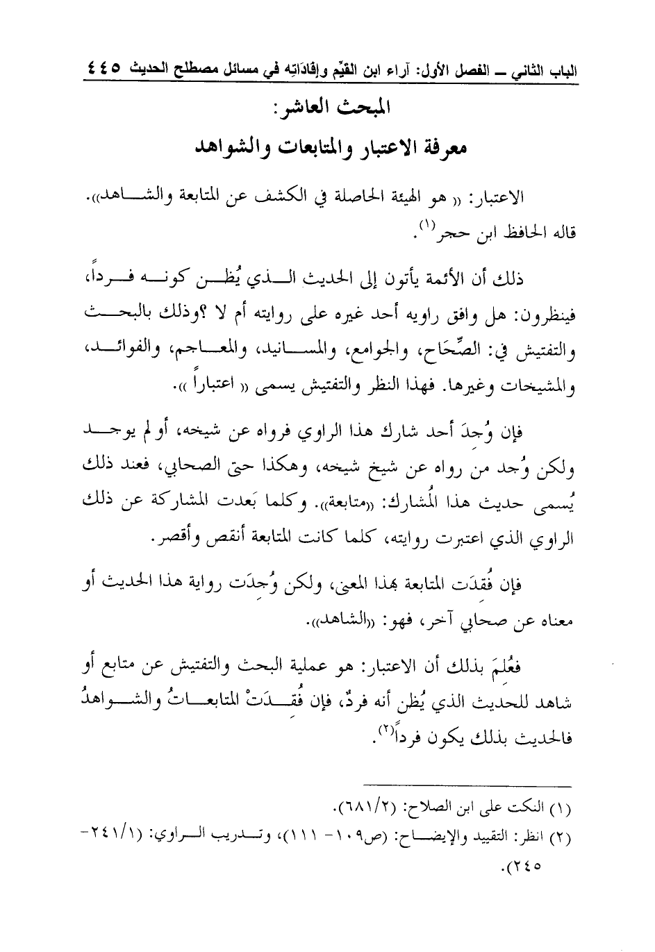 المبحث العاشر: معرفة الاعتبار والمتابعات والشواهد