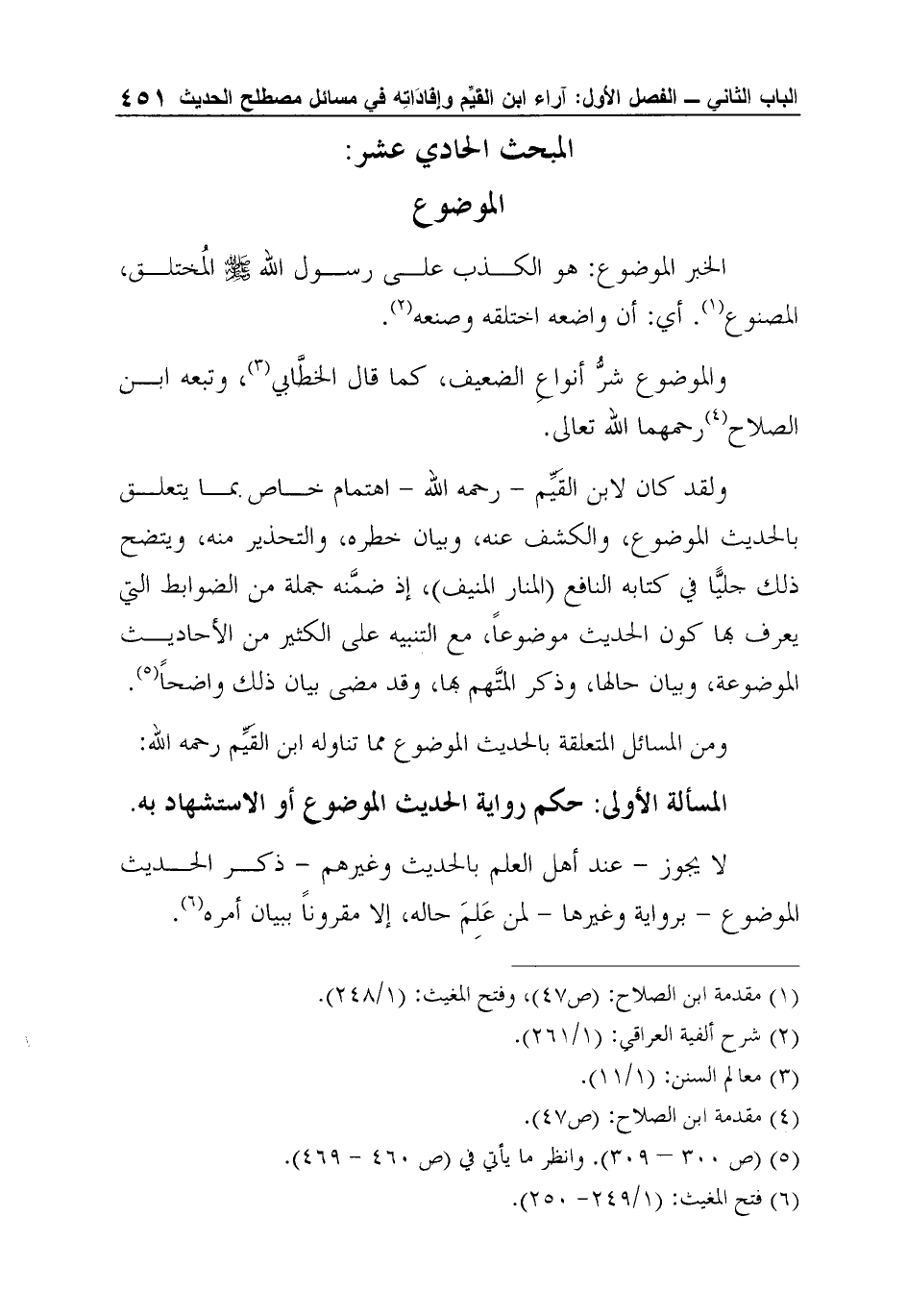 ومن المسائل المتعلقة بالحديث الموضوع مما تناوله ابن القَيِّم رحمه الله: