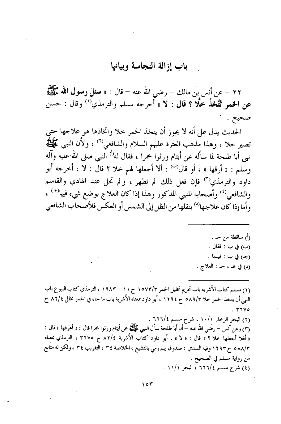 (¬1) مسلم كتاب الأشربة باب تحريم تخليل الخمر 3/ 1573 ح 11 - 1983، الترمذي كتاب البيوع باب النهي أن يتخذ الخمر خلا 3/ 589 ح 1294، أبو داود بمعناه الأشربة باب ما جاء في الخمر تخلل 4/ 82 ح 3675.