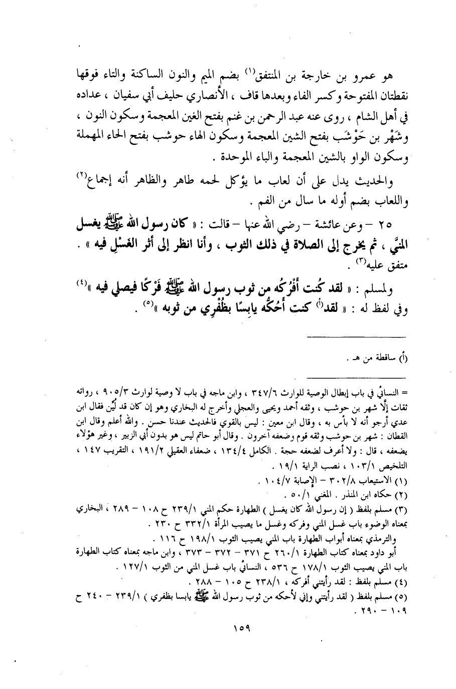 (¬3) مسلم بلفظ (إن رسول الله كان يغسل) الطهارة حكم المني 1/ 239 ح 108 - 289، البخاري بمعناه الوضوء باب غسل المني وفركه وغسل ما يصيب المرأة 1/ 332 ح 230.
