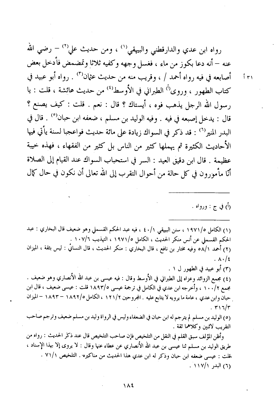 (¬1) الكامل 5/ 1971، سنن البيهقي 1/ 40، فيه عبد الحكم القسملي وهو ضعيف قال البخاري: عبد الحكم القسملي عن أنس منكر الحديث، الكامل 5/ 1971، التهذيب 6/ 107.