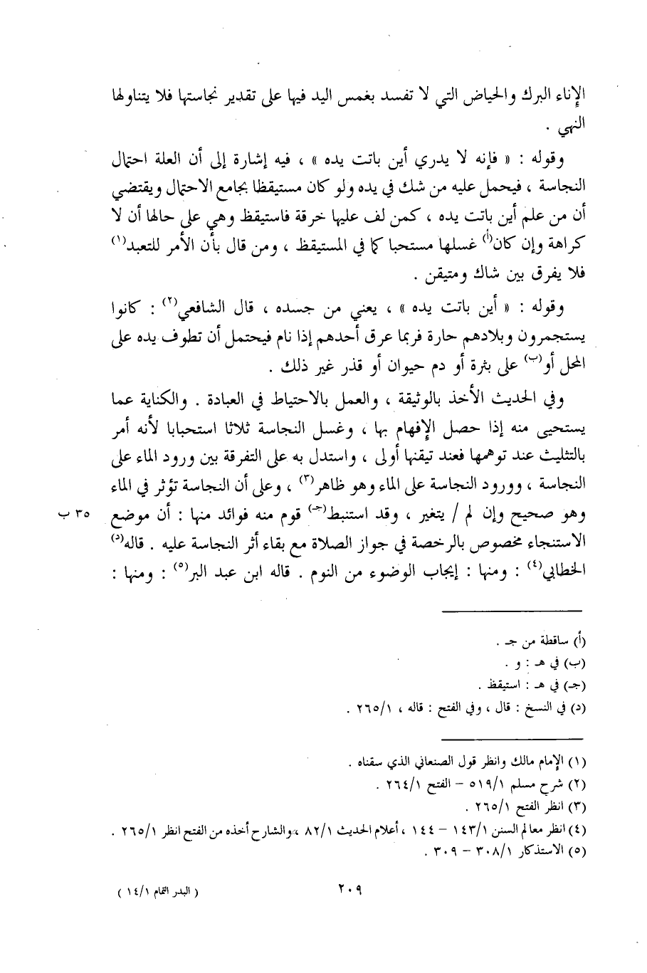 (¬4) انظر معالم السنن 1/ 143 - 144، أعلام الحديث 1/ 82، والشارح أخذه من الفتح انظر 1/ 265.