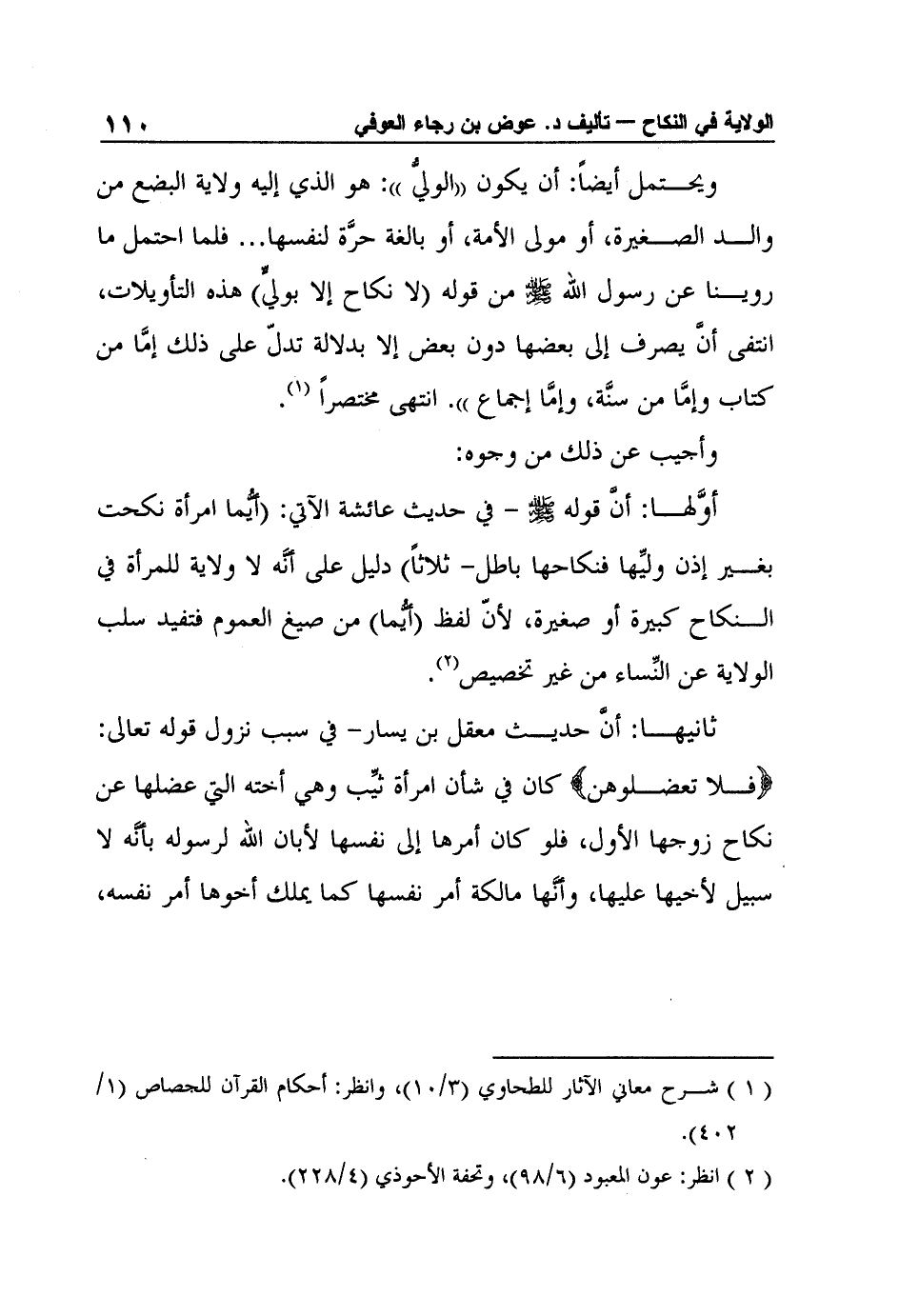 ثانيها: أنَّ حديث معقل بن يسار- في سبب نزول قوله تعالى: {فلا تعضلوهن} كان في شأن امرأة ثيِّب وهي أخته التي عضلها عن نكاح زوجها الأول، فلو كان أمرها إلى نفسها لأبان الله لرسوله بأنَّه لا سبيل لأخيها عليها، وأنَّها مالكة أمر نفسها كما يملك أخوها أمر نفسه،