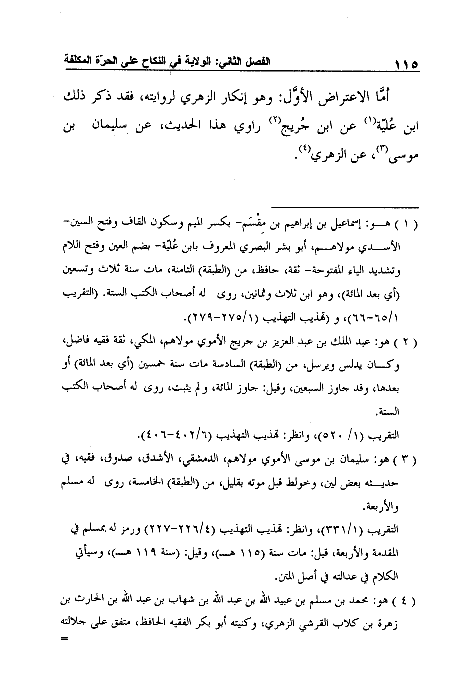 4 هو: محمد بن مسلم بن عبيد الله بن عبد الله بن شهاب بن عبد الله بن الحارث بن زهرة بن كلاب القرشي الزهري، وكنيته أبو بكر الفقيه الحافظ، متفق على جلالته وإتقانه، وهو من رؤوس الطبقة الرابعة، مات سنة خمس وعشرين (أي بعد المائة) وقيل: قبل ذلك بسنة أو سنتين، روى له أصحاب الكتب الستة.