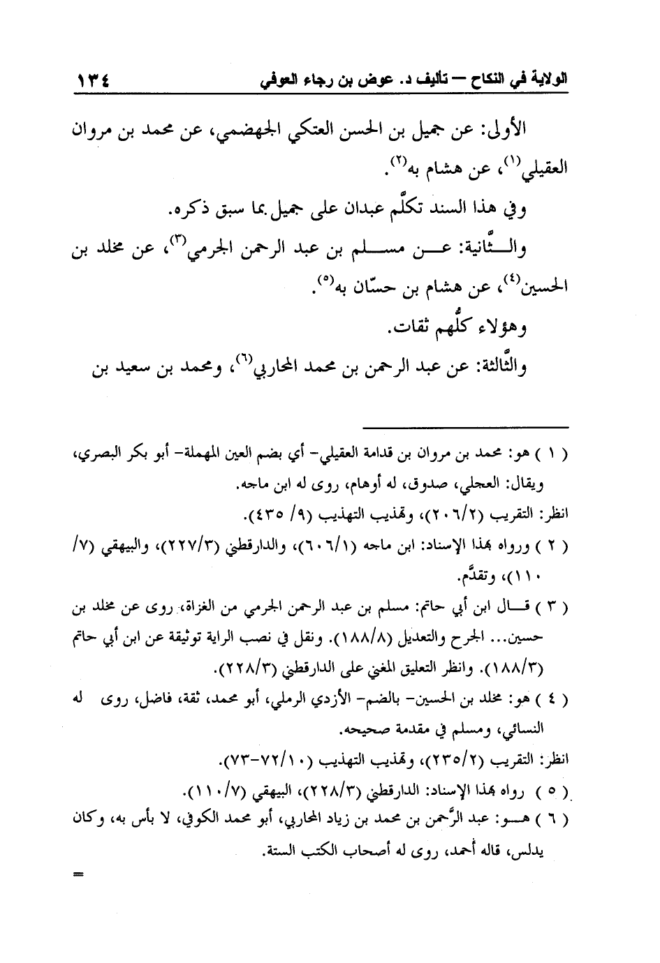 6 هو: عبد الرَّحمن بن محمد بن زياد المحاربي، أبو محمد الكوفي، لا بأس به، وكان يدلس، قاله أحمد، روى له أصحاب الكتب الستة.