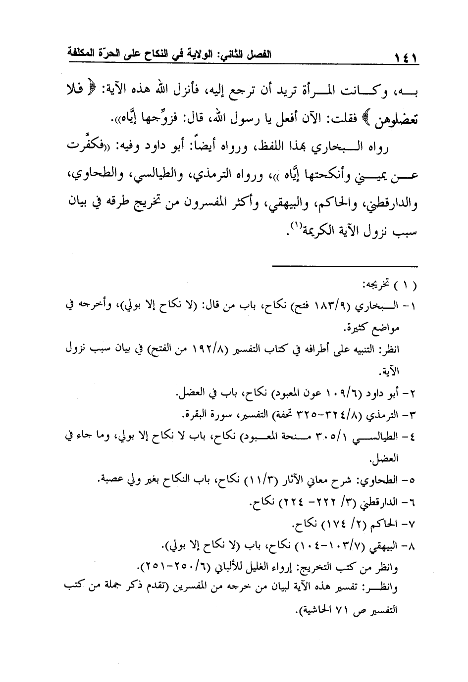 2- أبو داود (6/109 عون المعبود) نكاح، باب في العضل.