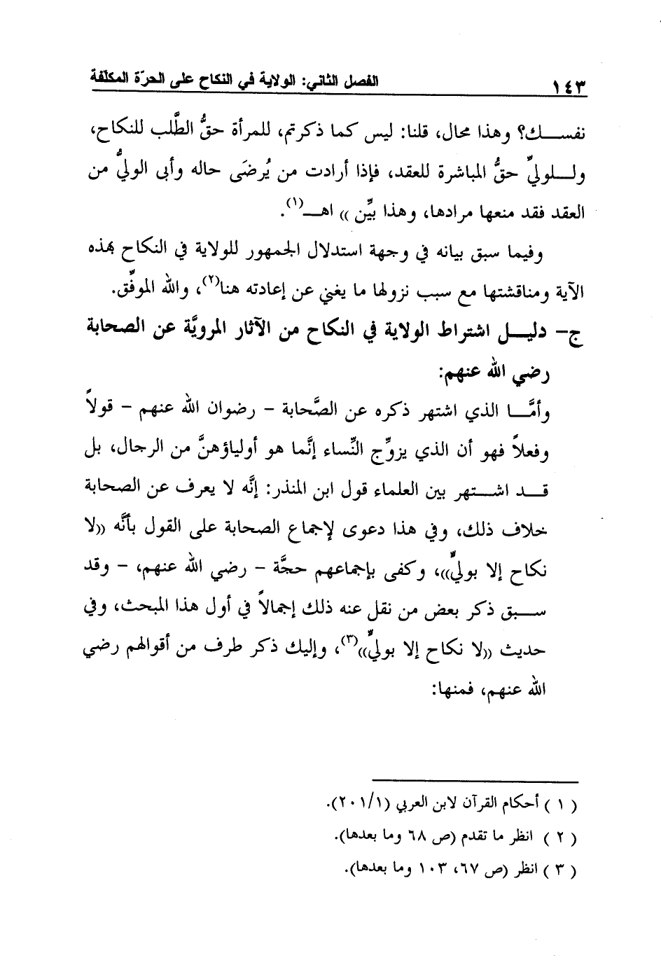 1 أحكام القرآن لابن العربي (1/201) .