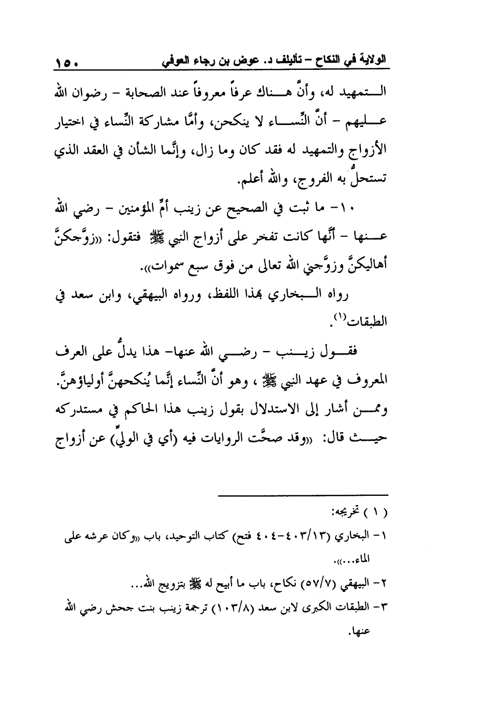 التمهيد له، وأنَّ هناك عرفاً معروفاً عند الصحابة - رضوان الله عليهم - أنَّ النِّساء لا ينكحن، وأمَّا مشاركة النِّساء في اختيار الأزواج والتمهيد له فقد كان وما زال، وإنَّما الشأن في العقد الذي تستحلُّ به الفروج، والله أعلم.