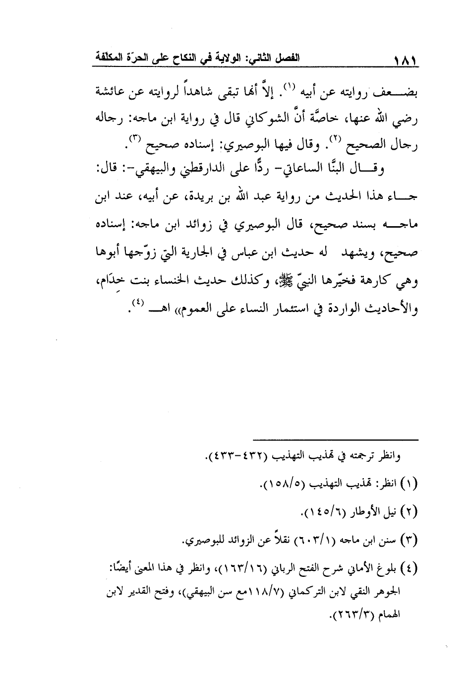 4 بلوغ الأماني شرح الفتح الرباني (16/163) ، وانظر في هذا المعنى أيضًا: الجوهر النقي لابن التركماني (7/118مع سن البيهقي) ، وفتح القدير لابن الهمام (3/263) .