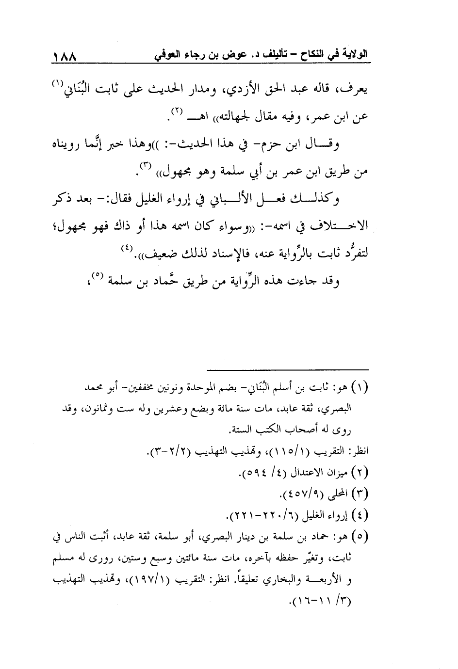 5 هو: حماد بن سلمة بن دينار البصري، أبو سلمة، ثقة عابد، أثبت الناس في ثابت، وتغيّر حفظه بآخره، مات سنة مائتين وسبع وستين، رورى له مسلم والأربعة والبخاري تعليقاً. انظر: التقريب (1/197) ، وتهذيب التهذيب (3/ 11-16) .