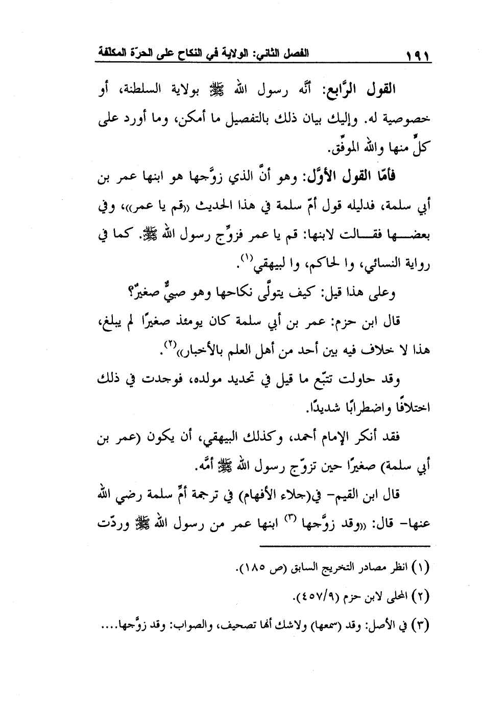 قال ابن حزم: عمر بن أبي سلمة كان يومئذ صغيرًا لم يبلغ، هذا لا خلاف فيه بين أحد من أهل العلم بالأخبار"2.