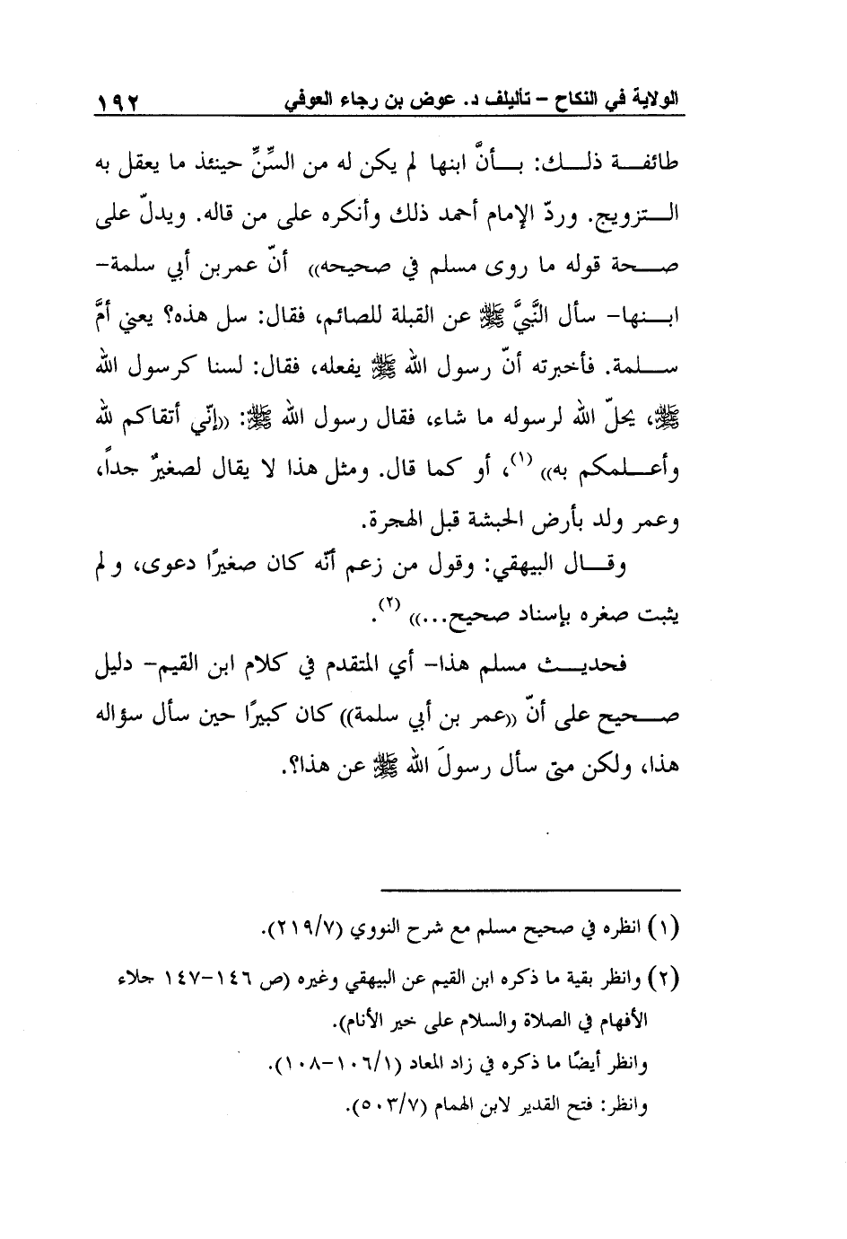 طائفة ذلك: بأنَّ ابنها لم يكن له من السِّنِّ حينئذ ما يعقل به التزويج. وردّ الإمام أحمد ذلك وأنكره على من قاله. ويدلّ على صحة قوله ما روى مسلم في صحيحه" أنّ عمربن أبي سلمة- ابنها- سأل النَّبيَّ صلى الله عليه وسلم عن القبلة للصائم، فقال: سل هذه؟ يعني أمَّ سلمة. فأخبرته أنّ رسول الله صلى الله عليه وسلم يفعله، فقال: لسنا كرسول الله صلى الله عليه وسلم، يحلّ الله لرسوله ما شاء، فقال رسول الله صلى الله عليه وسلم: "إنّي أتقاكم لله وأعلمكم به" 1، أو كما قال. ومثل هذا لا يقال لصغيرٌ جداً، وعمر ولد بأرض الحبشة قبل الهجرة.