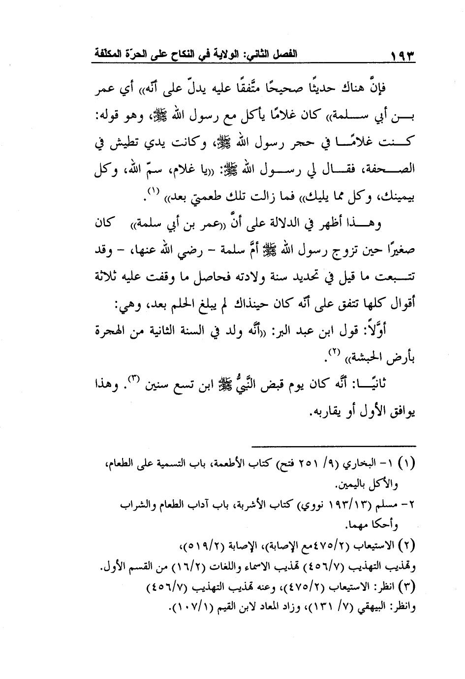 وهذا أظهر في الدلالة على أنَّ "عمر بن أبي سلمة" كان صغيرًا حين تزوج رسول الله صلى الله عليه وسلم أمَّ سلمة - رضي الله عنها، - وقد تتبعت ما قيل في تحديد سنة ولادته فحاصل ما وقفت عليه ثلاثة أقوال كلها تتفق على أنّه كان حينذاك لم يبلغ الحلم بعد، وهي: