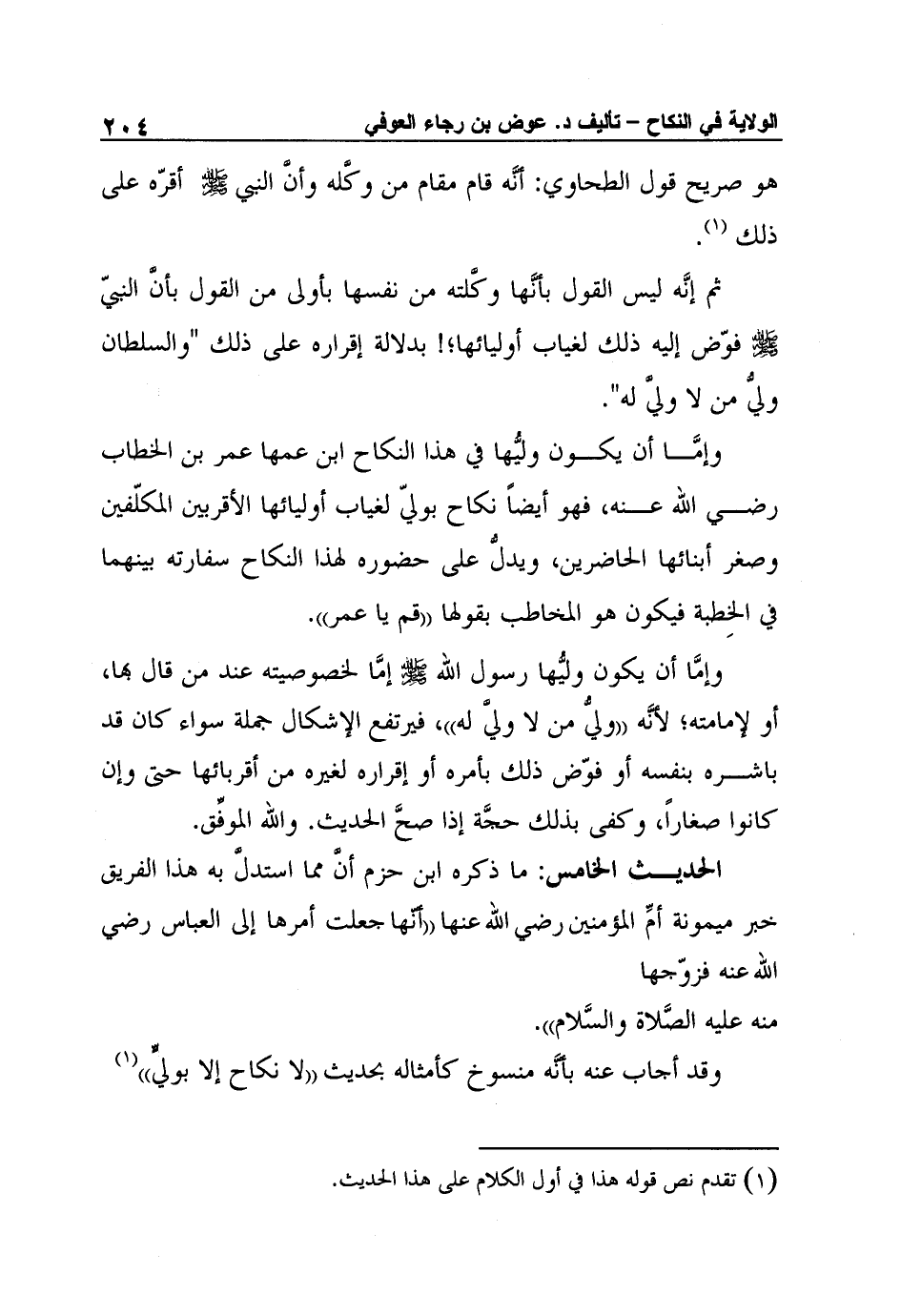 الحديث الخامس: ما ذكره ابن حزم أنَّ مما استدلَّ به هذا الفريق خبر ميمونة أمِّ المؤمنين رضي الله عنها "أنّها جعلت أمرها إلى العباس رضي الله عنه فزوّجها