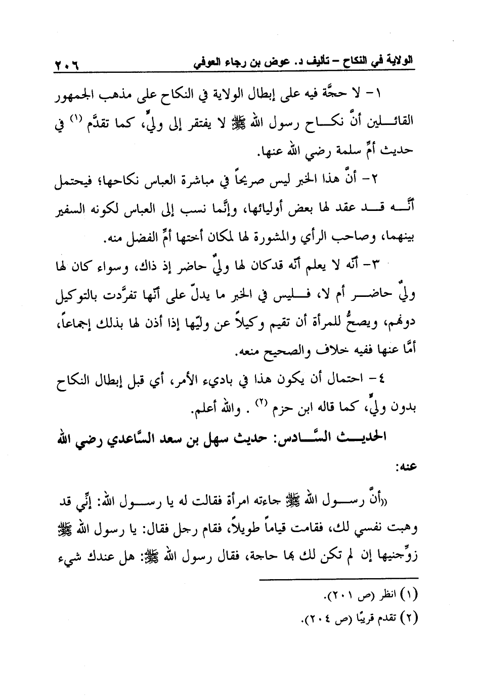 2- أنَّ هذا الخبر ليس صريحاً في مباشرة العباس نكاحها؛ فيحتمل أنَّه قد عقد لها بعض أوليائها، وإنَّما نسب إلى العباس لكونه السفير بينهما، وصاحب الرأي والمشورة لها لمكان أختها أمِّ الفضل منه.