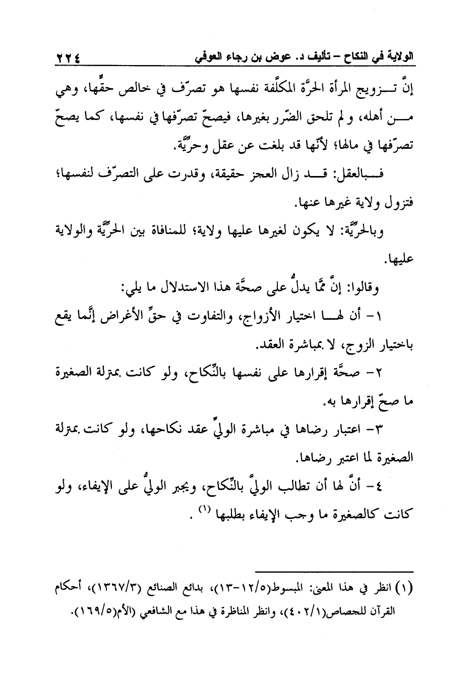 1- أن لها اختيار الأزواج، والتفاوت في حقِّ الأغراض إنَّما يقع باختيار الزوج، لا بمباشرة العقد.