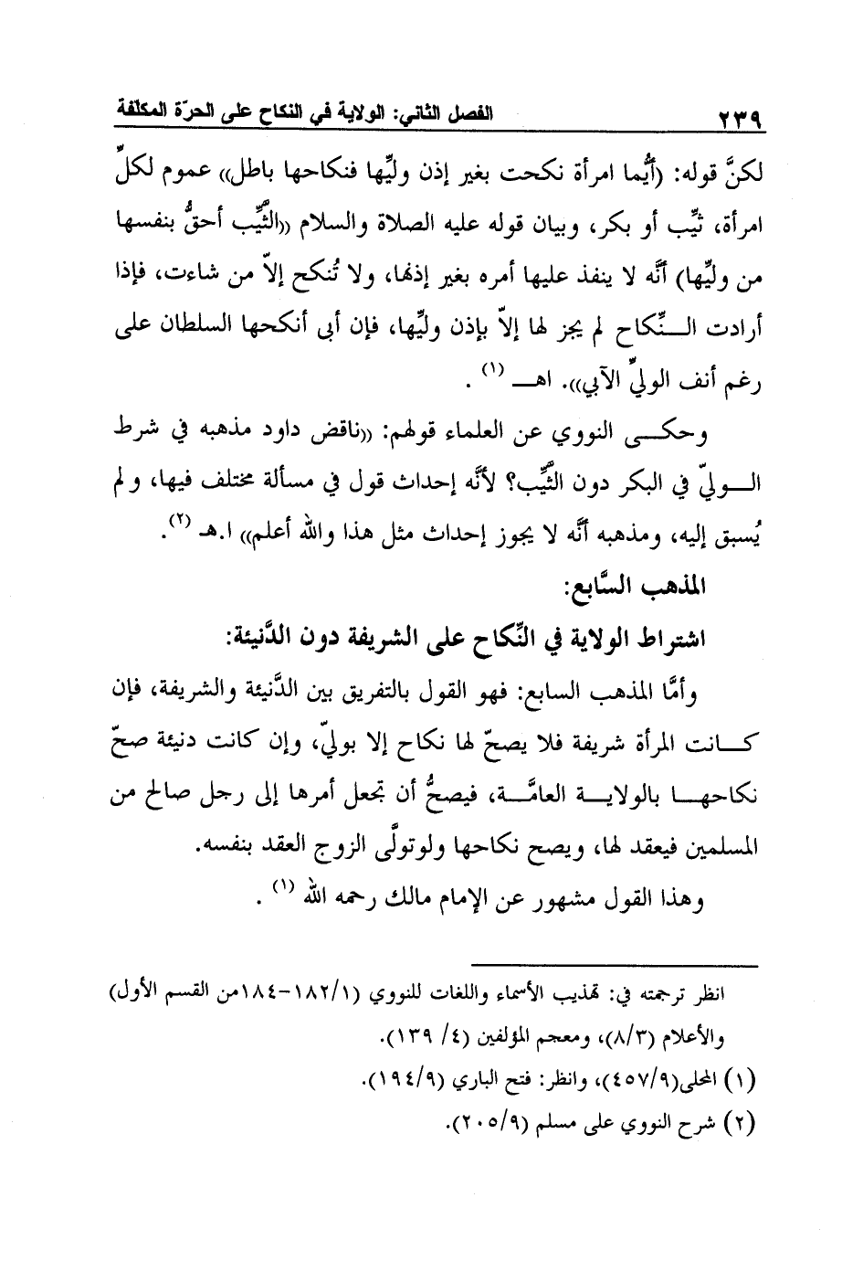 المذهب السَّابع: اشتراط الولاية في النِّكاح على الشريفة دون الدَّنيئة: