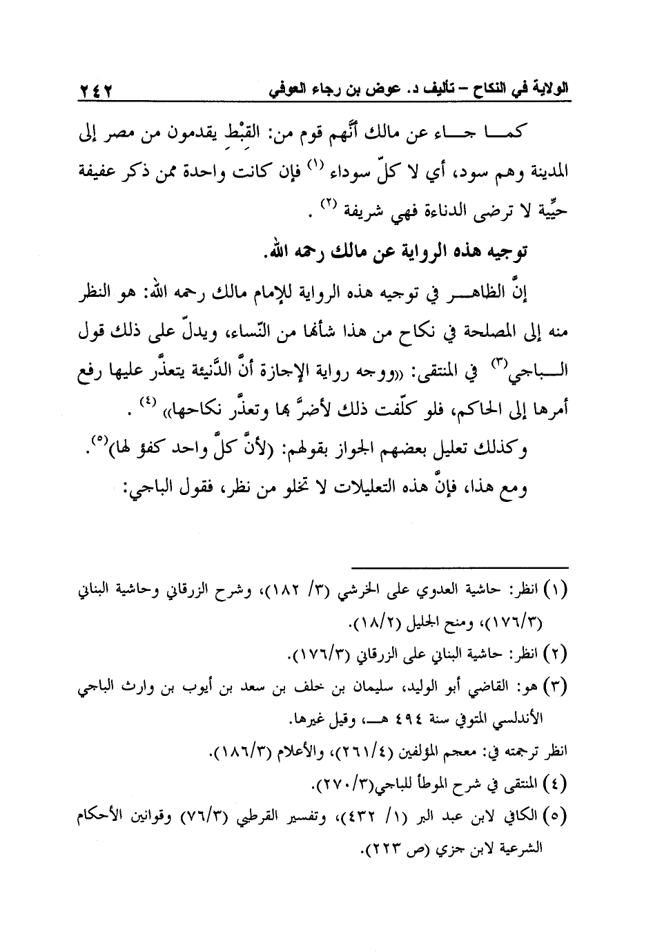 ومع هذا، فإنَّ هذه التعليلات لا تخلو من نظر، فقول الباجي: