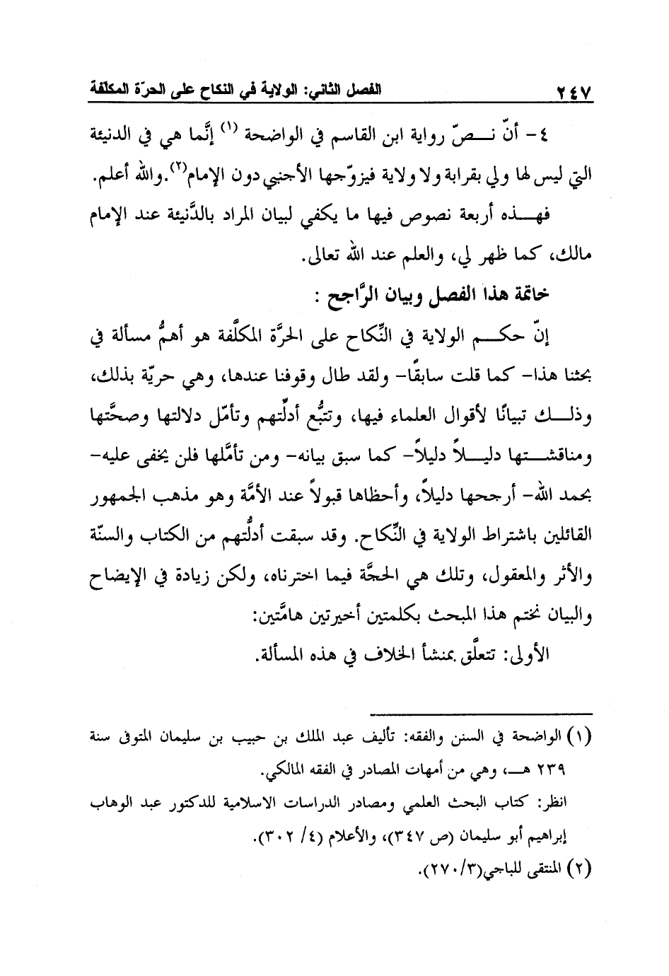 خاتمة هذا الفصل وبيان الرَّاجح: