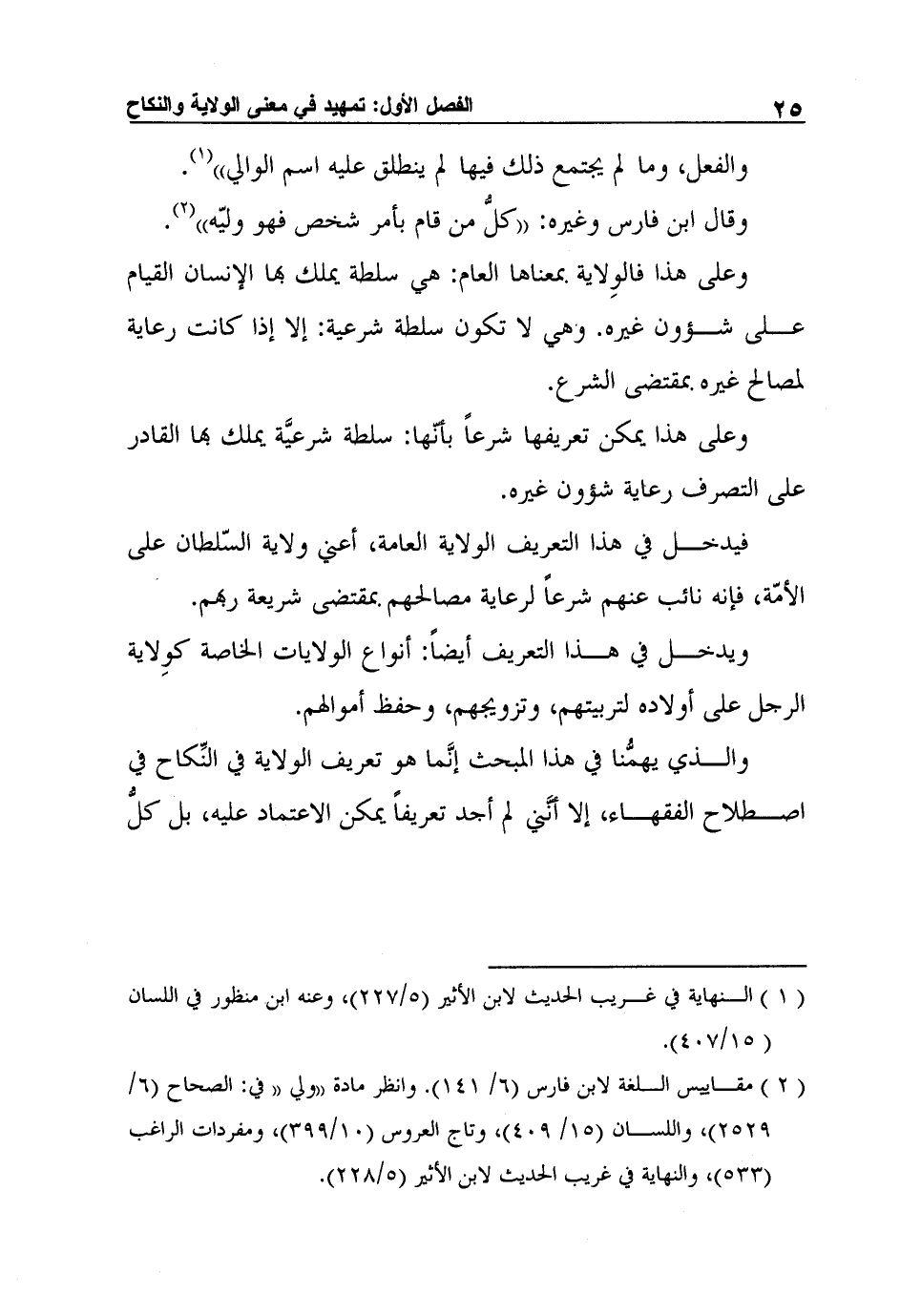والذي يهمُّنا في هذا المبحث إنَّما هو تعريف الولاية في النِّكاح في اصطلاح الفقهاء، إلا أنَّني لم أجد تعريفاً يمكن الاعتماد عليه، بل كلُّ