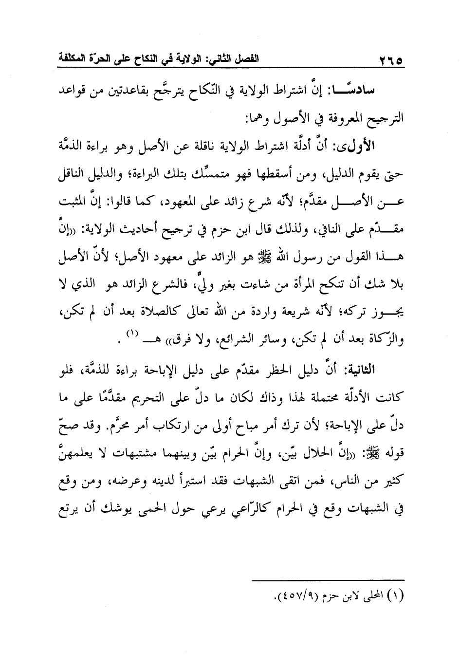 1 المحلى لابن حزم (9/457) .