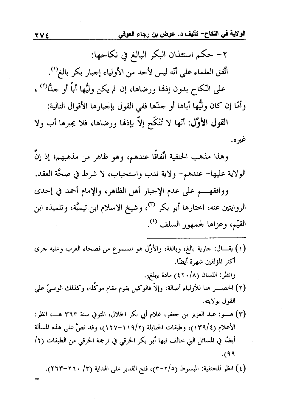 3 هو: عبد العزيز بن جعفر، غلام أبي بكر الخلال، المتوفي سنة 363 هـ، انظر: الأعلام (4/139) ، وطبقات الحنابلة (2/119-127) ، وقد نصَّ على هذه المسألة أيضًا في المسائل التي خالف فيها أبو بكر الخرقي في ترجمة الخرقي من الطبقات (2/99) .