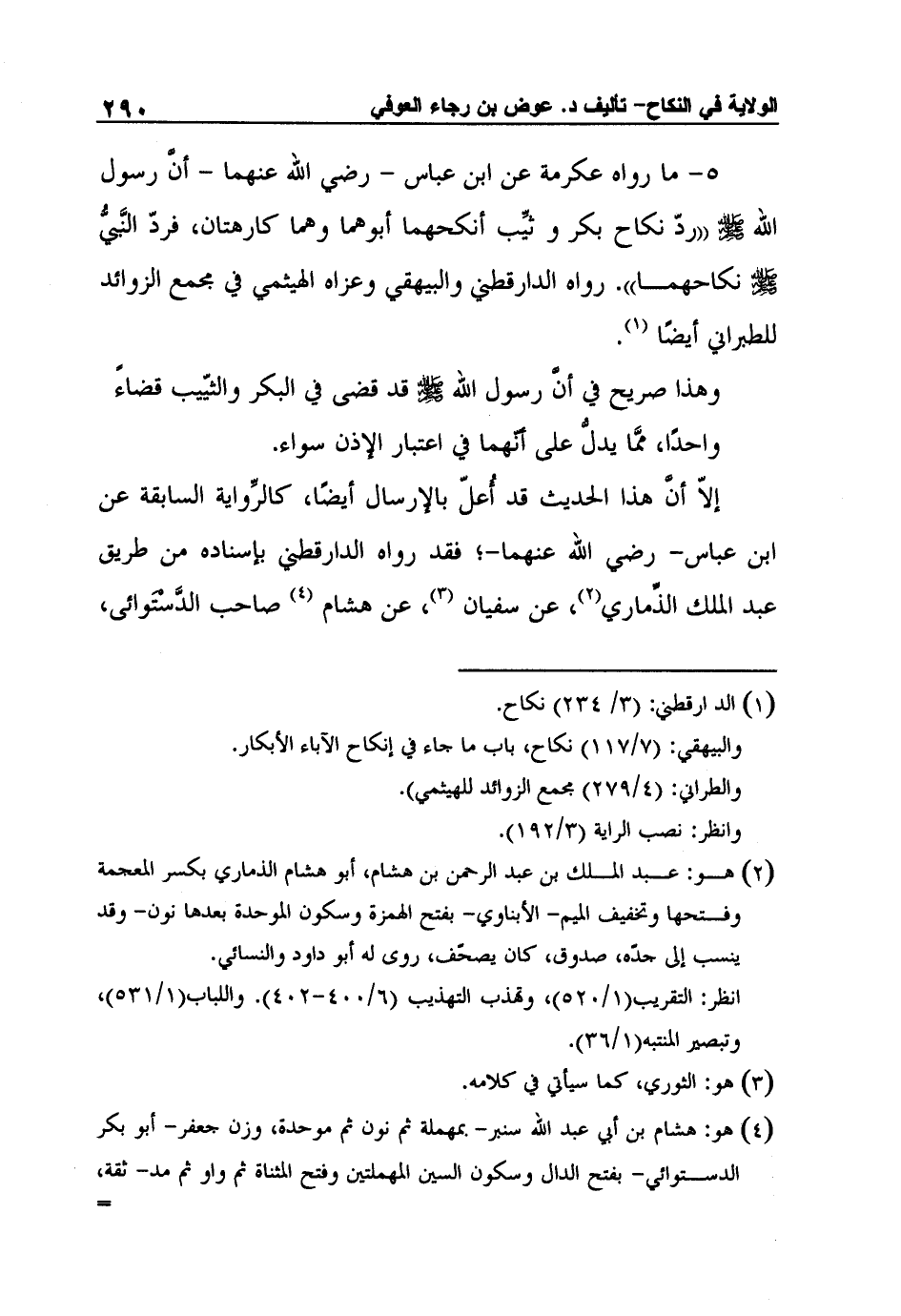 5- ما رواه عكرمة عن ابن عباس - رضي الله عنهما - أنَّ رسول الله صلى الله عليه وسلم "ردّ نكاح بكر وثيِّب أنكحهما أبوهما وهما كارهتان، فردّ النَّبيُّ صلى الله عليه وسلم نكاحهما". رواه الدارقطني والبيهقي وعزاه الهيثمي في مجمع الزوائد للطبراني أيضًا1.