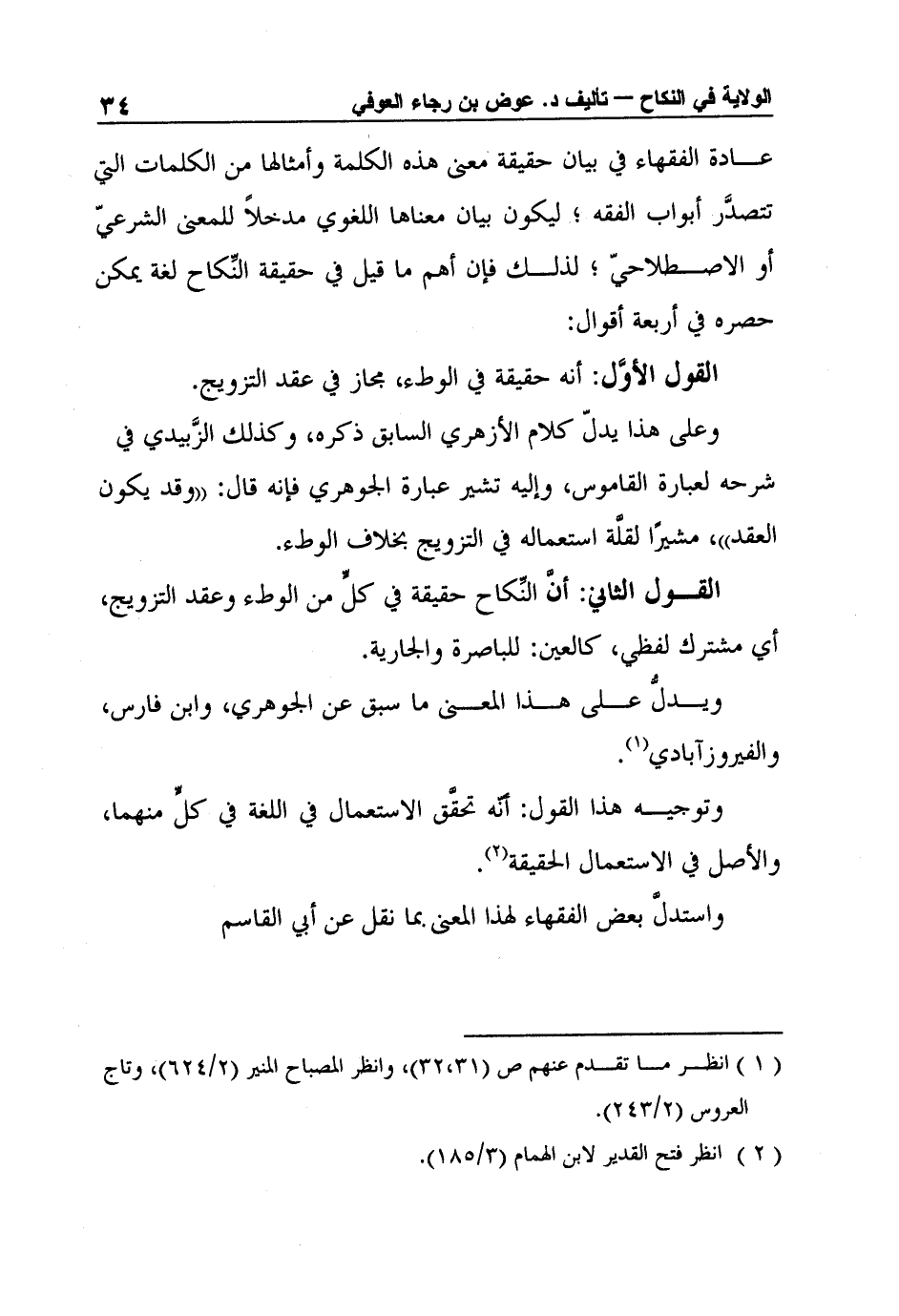 وعلى هذا يدلّ كلام الأزهري السابق ذكره، وكذلك الزَّبيدي في شرحه لعبارة القاموس، وإليه تشير عبارة الجوهري فإنه قال: "وقد يكون العقد"، مشيرًا لقلَّة استعماله في التزويج بخلاف الوطء.
