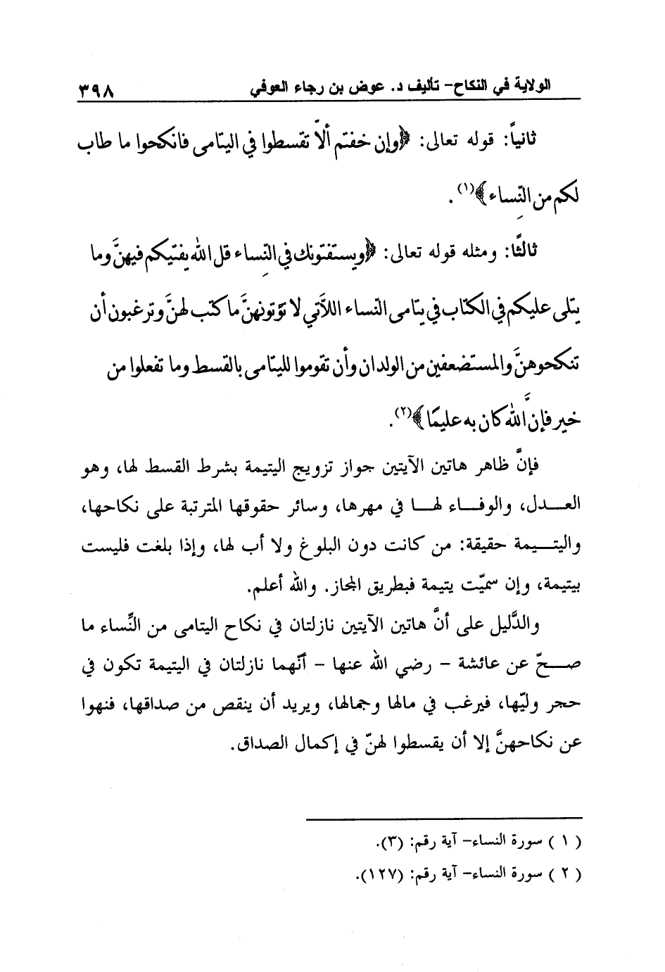 1 سورة النساء- آية رقم: (3) .