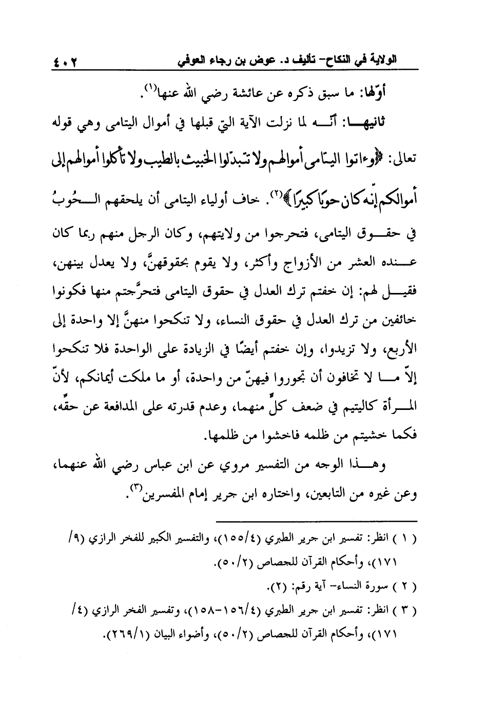 3 انظر: تفسير ابن جرير الطبري (4/156-158) ، وتفسير الفخر الرازي (4/171) ، وأحكام القرآن للجصاص (2/50) ، وأضواء البيان (1/269) .