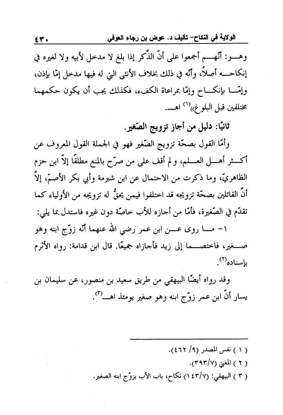 وقد رواه أيضًا البيهقي من طريق سعيد بن منصور، عن سليمان بن يسار أنّ ابن عمر زوّج ابنه وهو صغير يومئذ اهـ3.