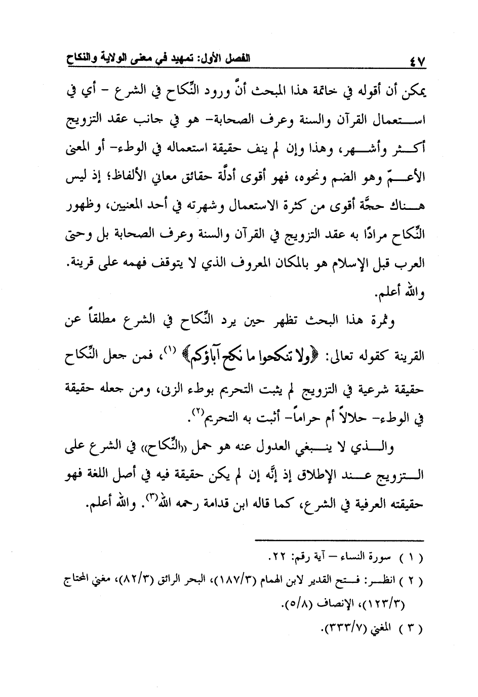 والذي لا ينبغي العدول عنه هو حمل "النِّكاح" في الشرع على التزويج عند الإطلاق إذ إنَّه إن لم يكن حقيقة فيه في أصل اللغة فهو حقيقته العرفية في الشرع، كما قاله ابن قدامة رحمه الله3. والله أعلم.