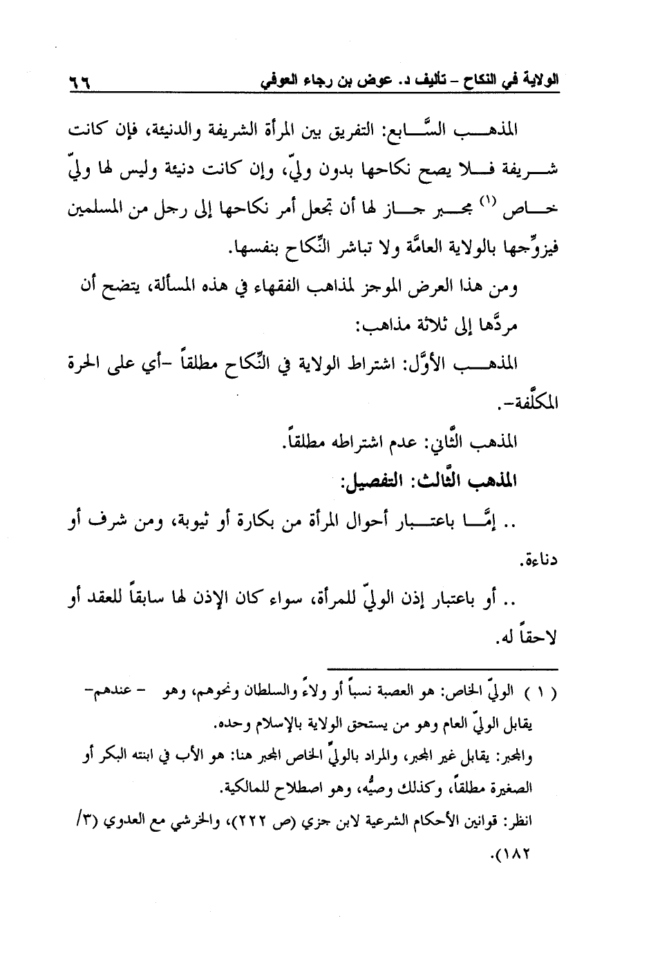 المذهب الأوَّل: اشتراط الولاية في النِّكاح مطلقاً -أي على الحرة المكلَّفة-.