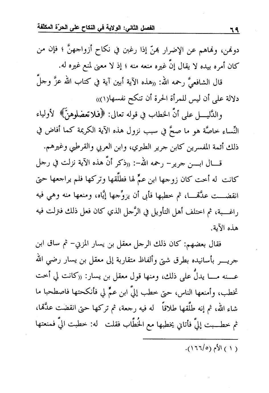 قال الشافعيَّ رحمه الله: "هذه الآية أبين آية في كتاب الله عزَّ وجلَّ دلالة على أن ليس للمرأة الحرة أن تنكح نفسها (1")