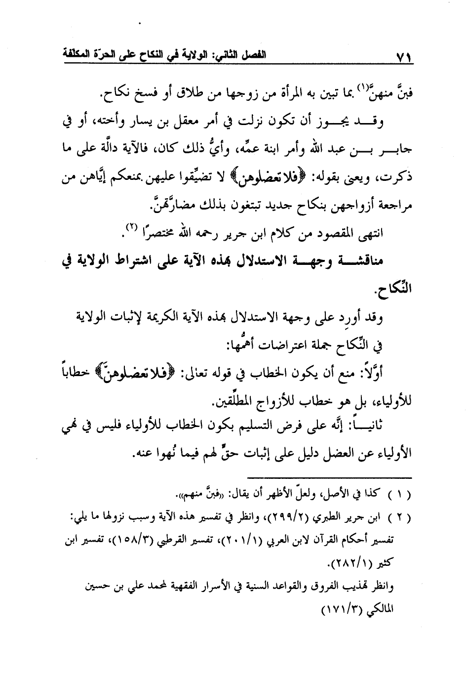 مناقشة وجهة الاستدلال بهذه الآية على اشتراط الولاية في النِّكاح.