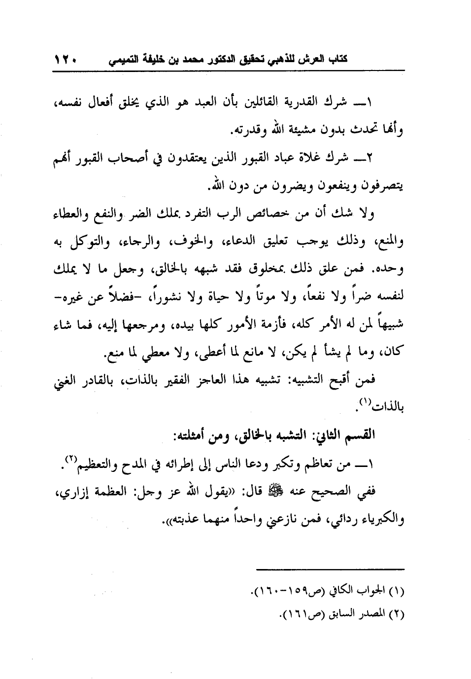 فمن أقبح التشبيه: تشبيه هذا العاجز الفقير بالذات، بالقادر الغني بالذات1.