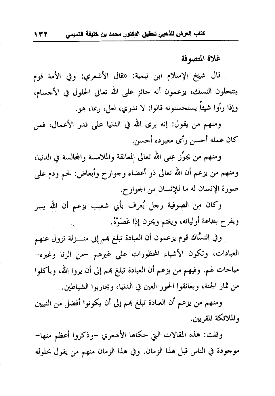 قال شيخ الإسلام ابن تيمية: "قال الأشعري: وفي الأمة قوم ينتحلون النسك، يزعمون أنه جائز على الله تعالى الحلول في الأجسام، وإذا رأوا شيئاً يستحسنونه قالوا: لا ندري، لعل، ربما، هو.