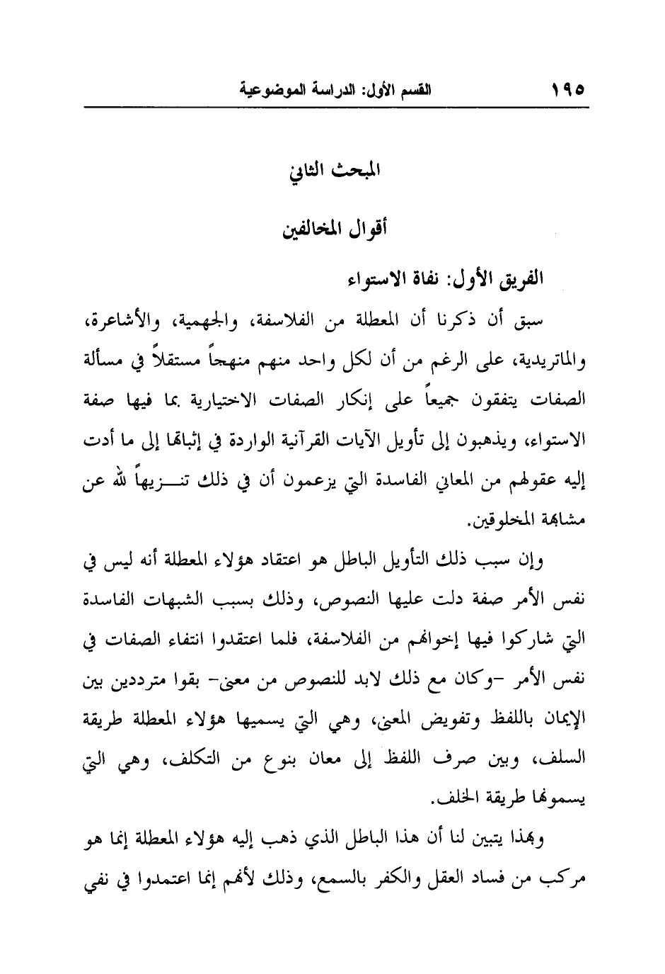 وبهذا يتبين لنا أن هذا الباطل الذي ذهب إليه هؤلاء المعطلة إنما هو مركب من فساد العقل والكفر بالسمع، وذلك لأنهم إنما اعتمدوا في نفي