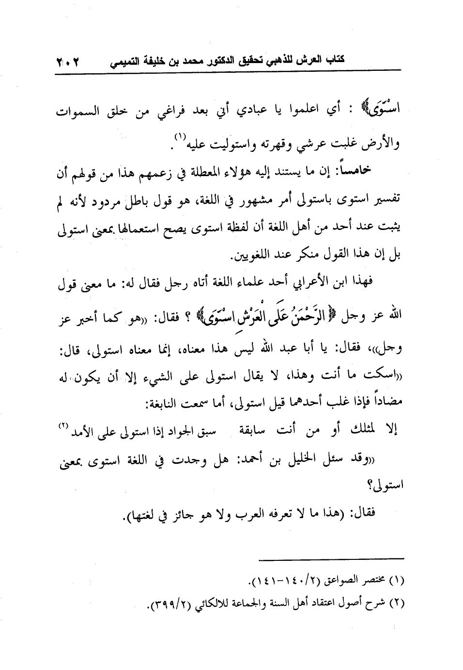 خامساً: إن ما يستند إليه هؤلاء المعطلة في زعمهم هذا من قولهم أن تفسير استوى باستولى أمر مشهور في اللغة، هو قول باطل مردود لأنه لم يثبت عند أحد من أهل اللغة أن لفظة استوى يصح استعمالها بمعنى استولى بل إن هذا القول منكر عند اللغويين.