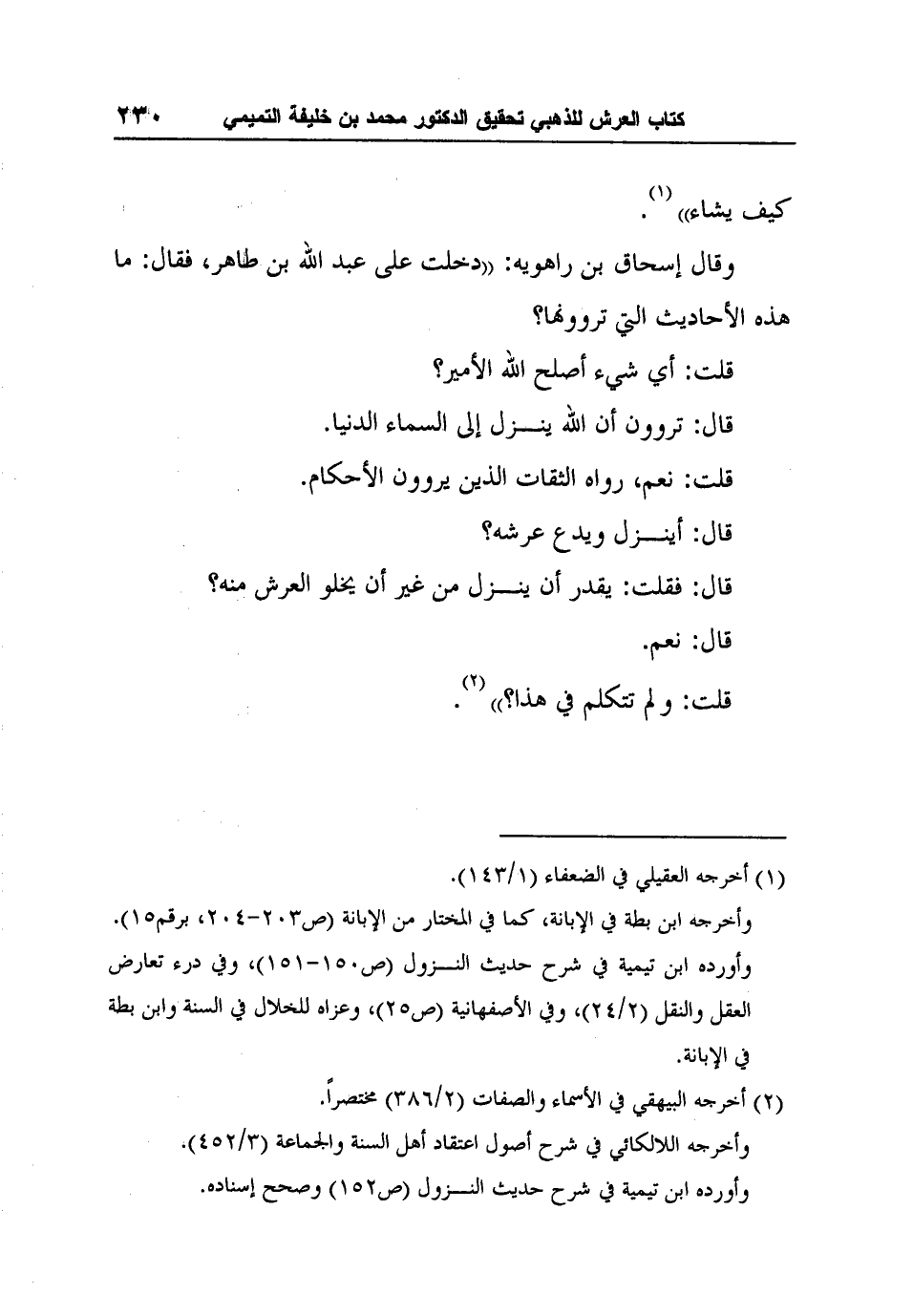 قال: فقلت: يقدر أن ينزل من غير أن يخلو العرش منه؟
