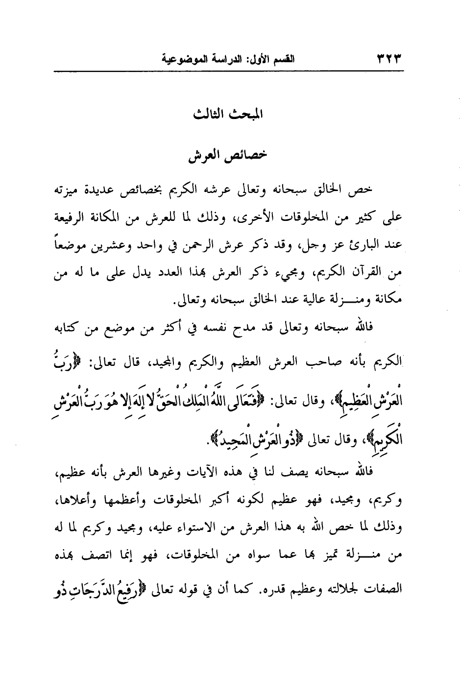 فالله سبحانه وتعالى قد مدح نفسه في أكثر من موضع من كتابه الكريم بأنه صاحب العرش العظيم والكريم والمجيد، قال تعالى: {رَبُّ الْعَرْشِ الْعَظِيمِ} ، وقال تعالى: {فَتَعَالَى اللَّهُ الْمَلِكُ الْحَقُّ لا إِلَهَ إِلا هُوَ رَبُّ الْعَرْشِ الْكَرِيمِ} ، وقال تعالى {ذُو الْعَرْشِ الْمَجِيدُ} .