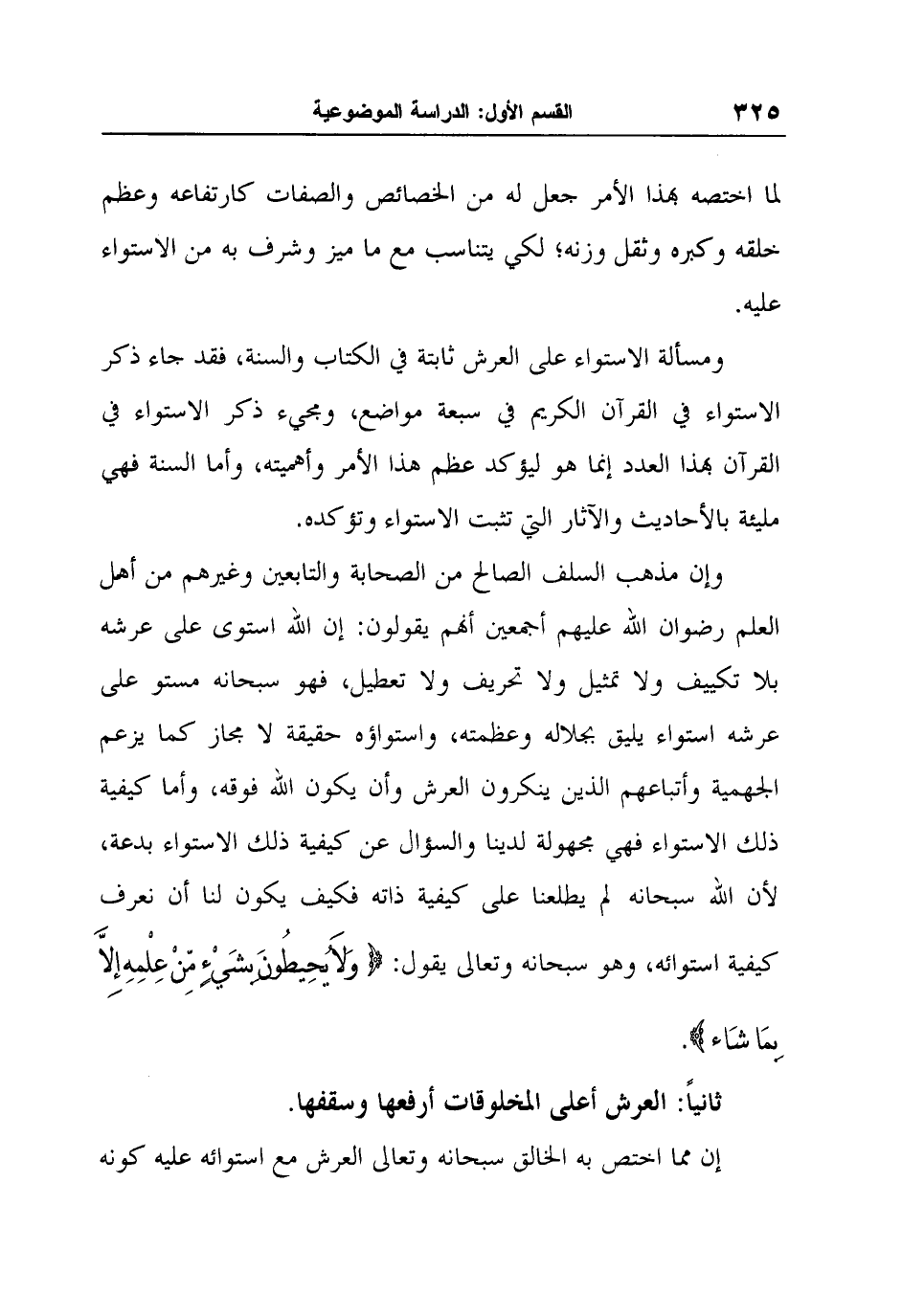 ثانياً: العرش أعلى المخلوقات أرفعها وسقفها.