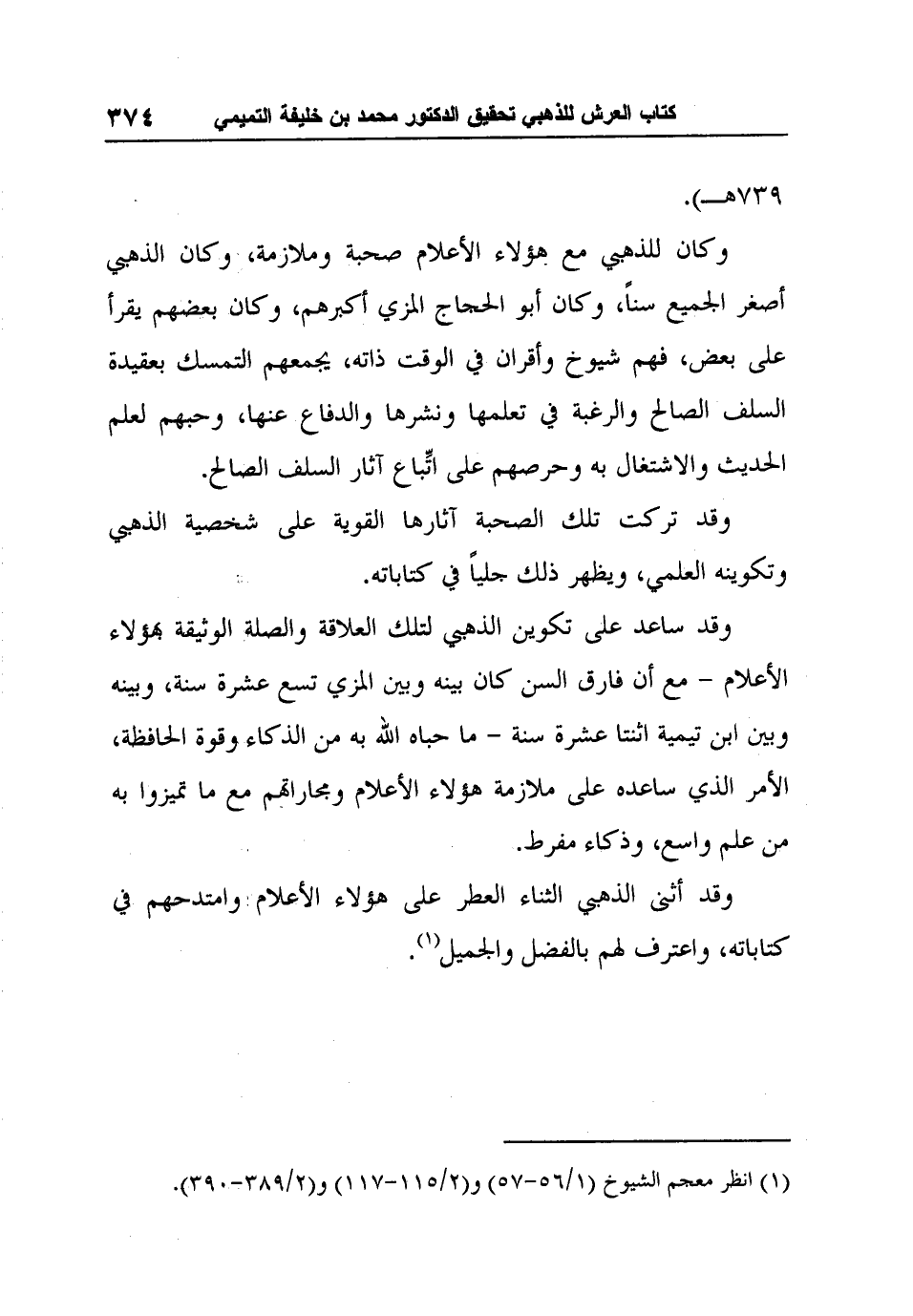 وكان للذهبي مع هؤلاء الأعلام صحبة وملازمة، وكان الذهبي أصغر الجميع سناً، وكان أبو الحجاج المزي أكبرهم، وكان بعضهم يقرأ على بعض، فهم شيوخ وأقران في الوقت ذاته، يجمعهم التمسك بعقيدة السلف الصالح والرغبة في تعلمها ونشرها والدفاع عنها، وحبهم لعلم الحديث والاشتغال به وحرصهم على اتِّباع آثار السلف الصالح.